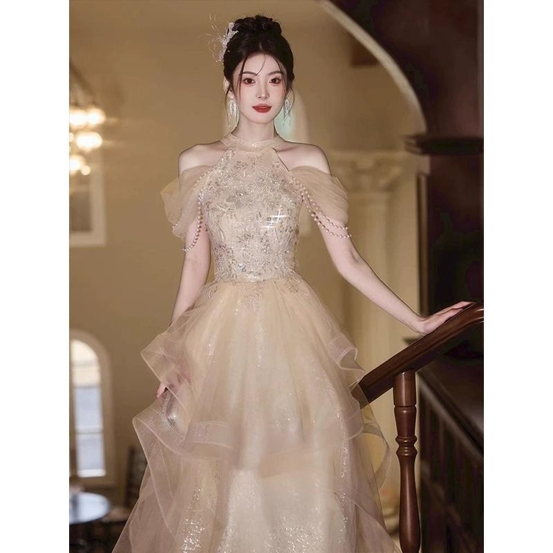 ドレス ウエディングドレス パーティードレス 演奏会 発表会 花嫁 イブニングドレス ブライダル 二次会 ロングドレス エレガント シャンパン