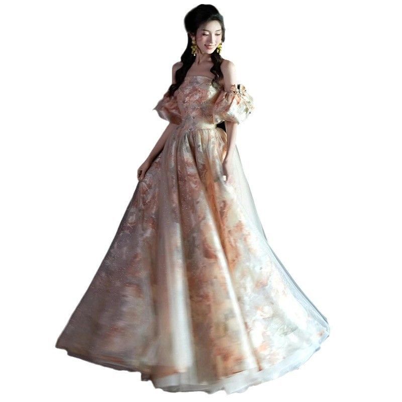 レディース パーティードレス 2025新款 新婦用 晨袍デザイン 敬酒服 在逃公主風 订婚式 芸考 成人式 ワンピース 感-10.16