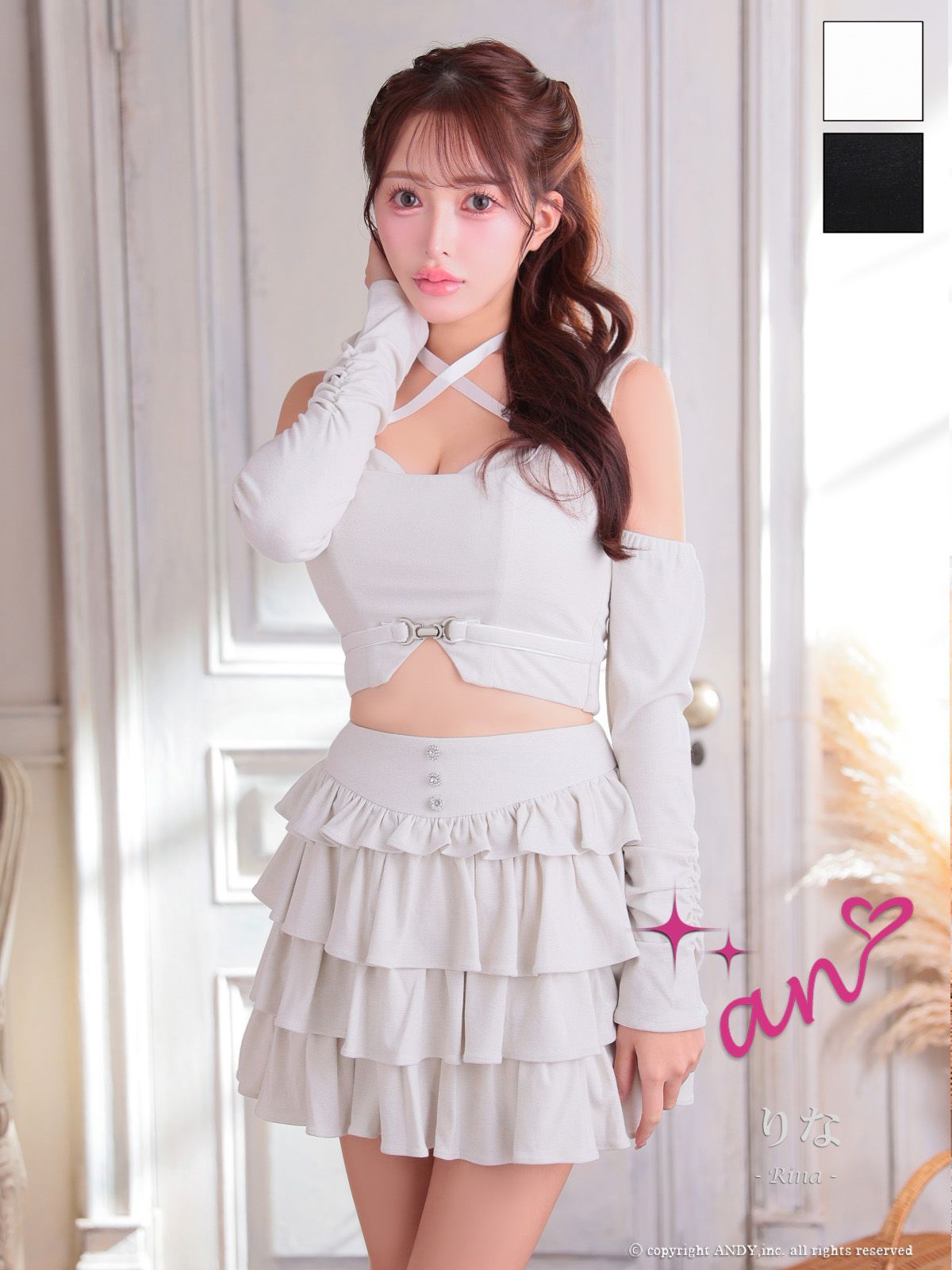 【an/アン】 マルチway/ 長袖/ 袖付き/ オフショル/ クロスネック/ ティアード/ フリル/ ラメ/ ストレッチ/ フレア/ セットアップ/ ミニドレス/ キャバドレス [AOC3957-B-2508]