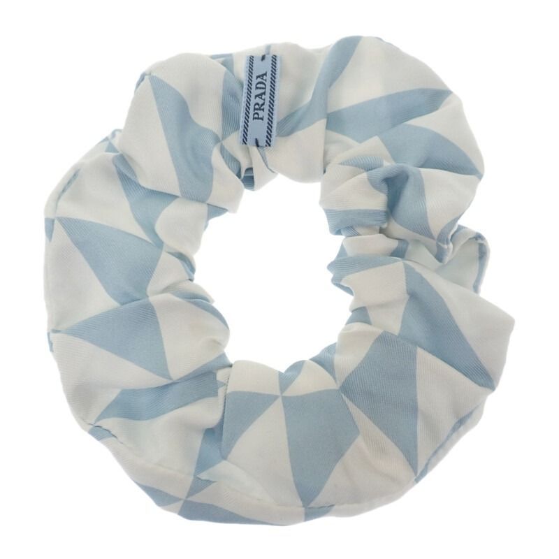 PRADA トライアングルロゴシュシュ ヘア シルク ブルー ホワイト レディース