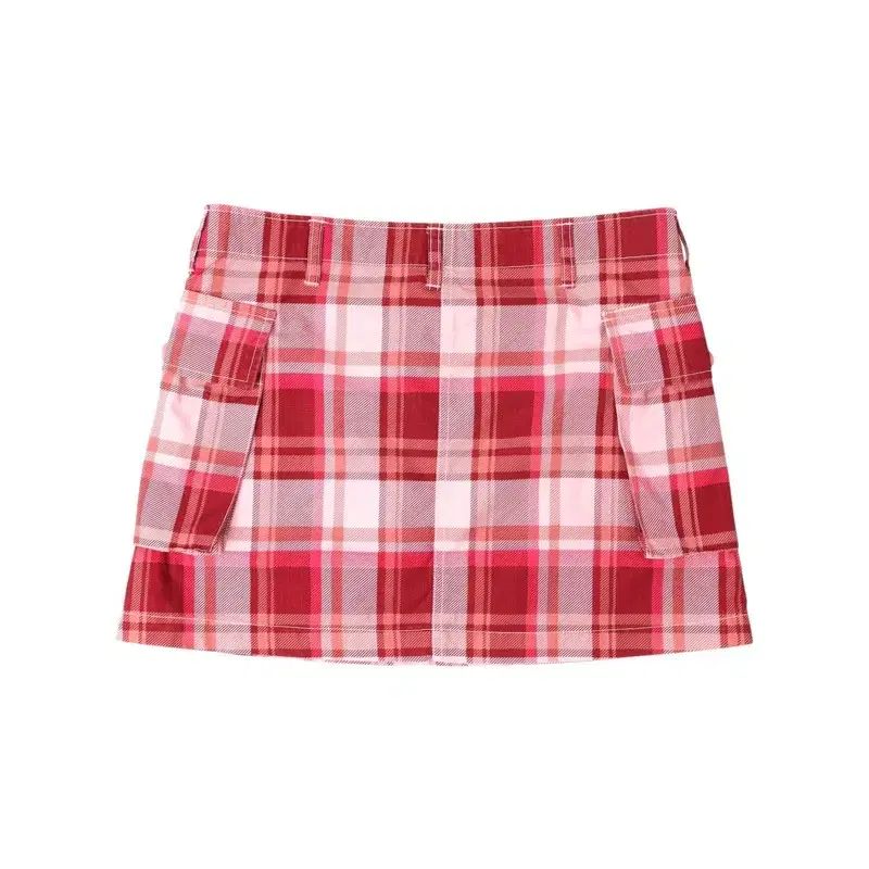 -Vape 女性用チェック柄カーゴローライズスカート