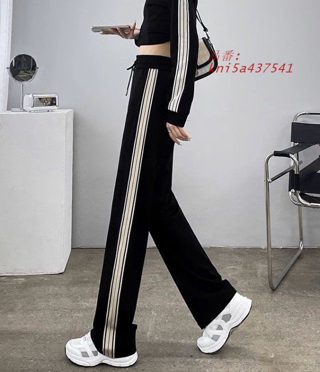 サイドラインパンツ サイドライン ジャージ レディース ボパンツ ロング丈 カジュアル 4 L 3 大きいサイズ ハイウエスト シンプル ドロスト 黒 kni 5 a 437541