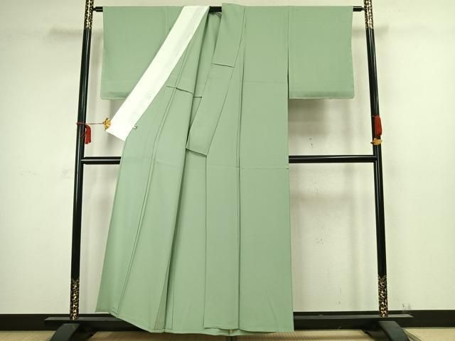 平和屋着物▽上質な色無地 単衣 薄萌葱色 正絹 ♥ fy