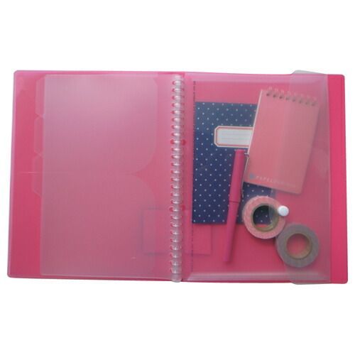 詳細情報A5サイズ20穴のフラップ付ポケット。バインダーを有効活用するアイテム、書類だけでなく細々したものを収納できます。シンプルな透明クリアカラー。