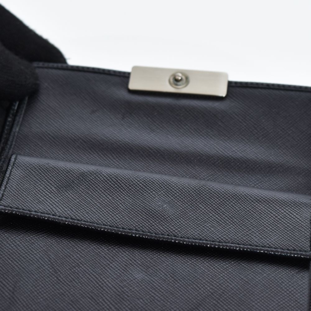 PRADA 定番のサフィアーノレザー。カードやお札が出しやすく、シンプルで高級感のあるデザインです。全体的に若干のシワやスレがあり。ロゴプレートに小傷が見受けられます。ご使用には問題ございませんので、まだまだご愛用頂けるコンディションです。