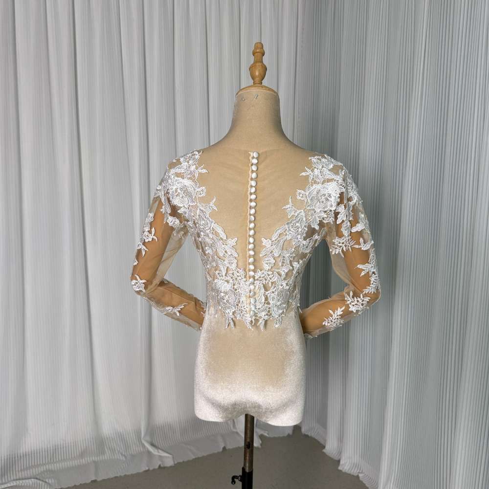 ウエディングドレス トップスのみ 3 D立体レース刺繍 花嫁 ウェディングドレ ロングスリーブ