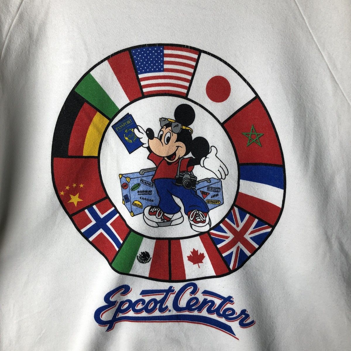 古着 80年代 ディズニー Disney MICKEY MOUSE ミッキーマウス 国旗柄 キャラクタースウェットシャツ トレーナー |eaa 419333