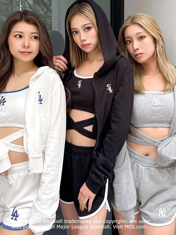 GYDA ジェイダ MLB バックロゴ スウェット パーカー パンツ ショート レディース LA NY SOX セットアップ 上下セット ジップパーカー