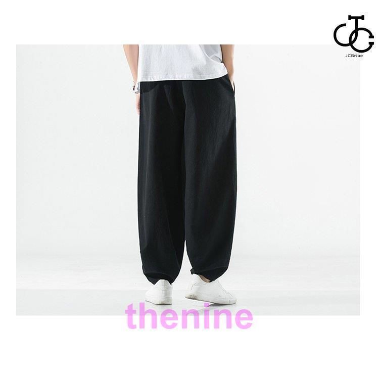 リネンパンツ メンズ サルエルパンツ 無地 ワイドパンツ 麻パンツ 綿麻風 通気性 薄手 ゆったり 夏ズボン サマー 父の 2022