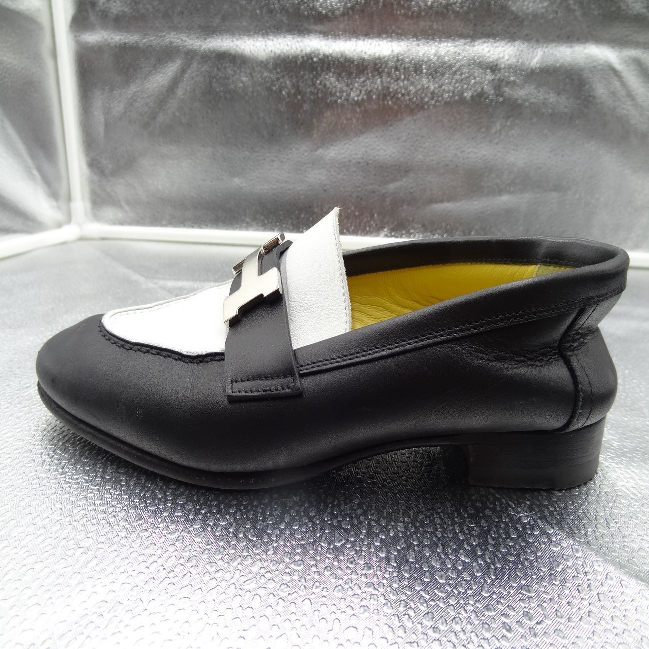 HERMES エルメス コンスタンス レザー ローファー Hロゴ ブラック×ホワイト サイズ 34 21 cm レディース バイ