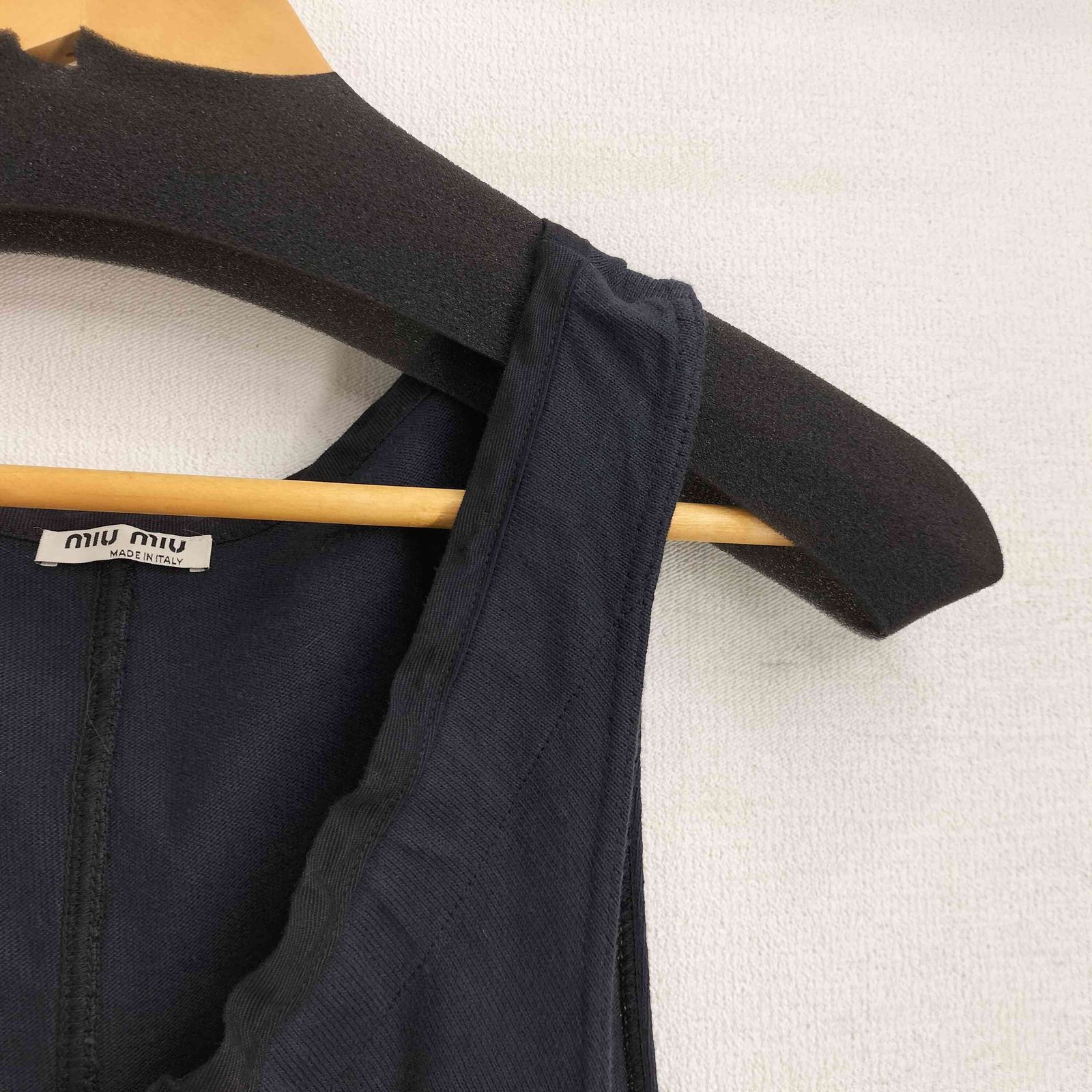 ミュウミュウ miu イタリア製 フリルデザイン サイドジップ コットン ノースリーブワンピース レディース M