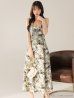 花柄を施したサテンのロングドレス。