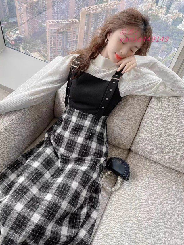 チェック ジャンパースカート 秋冬 切り替えワンピース Aライン ワンピース ファッション 韓国 レディース ミモレ丈 ウエスト 大きいサイズ yan 5 a 449149
