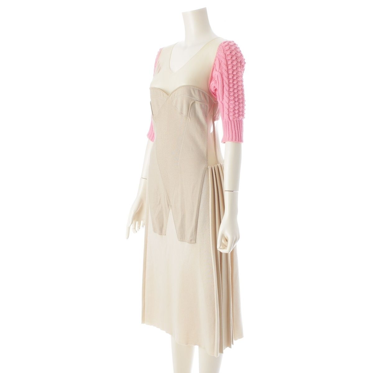 ジルサンダー 12年 ウール カシミヤ シルク ラフシモンズ ニット シアー ドッキング ワンピース ドレス ベージュ 36