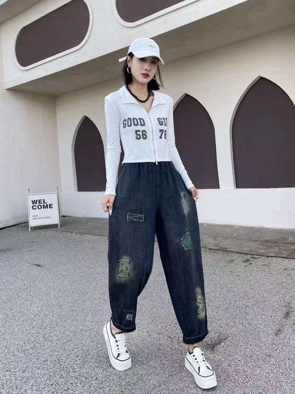 デニムパンツ レディース テーパードパンツ ボトムス ジーパン ウエストゴム 森ガール 無地 ズボン 柔らかい ゆったり ダメージ オシャレ カジュアル ファッション gutA 904