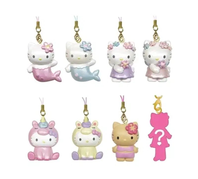 ハローキティファンタジーマスコットシリーズストラップキーホルダーフルボックスマーメイド、ユニコーン、フェアリー、シークレットなど、さまざまなキティのマスコットデザインがあります。未開封の商品で、キーホルダーは全部付属しています。箱は一度だけ開けられ、ストラップ全部未開封です。8個セットのみの販売です。丁寧に梱包して発送します