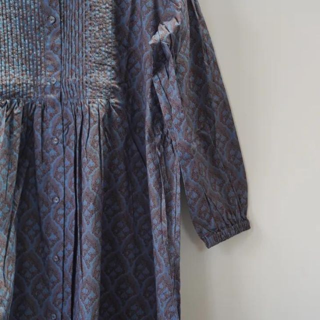sosotto ソソット 花柄プリントピンタックウエストドロストOP brown x blue toutouyouette ワンピース ドレス オリジナル生地