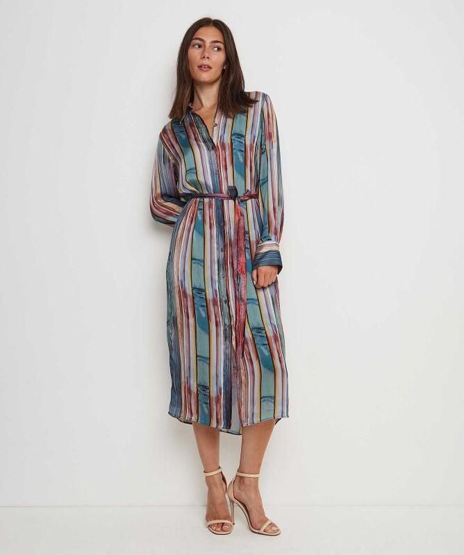 水彩ストライプミディシャツドレス