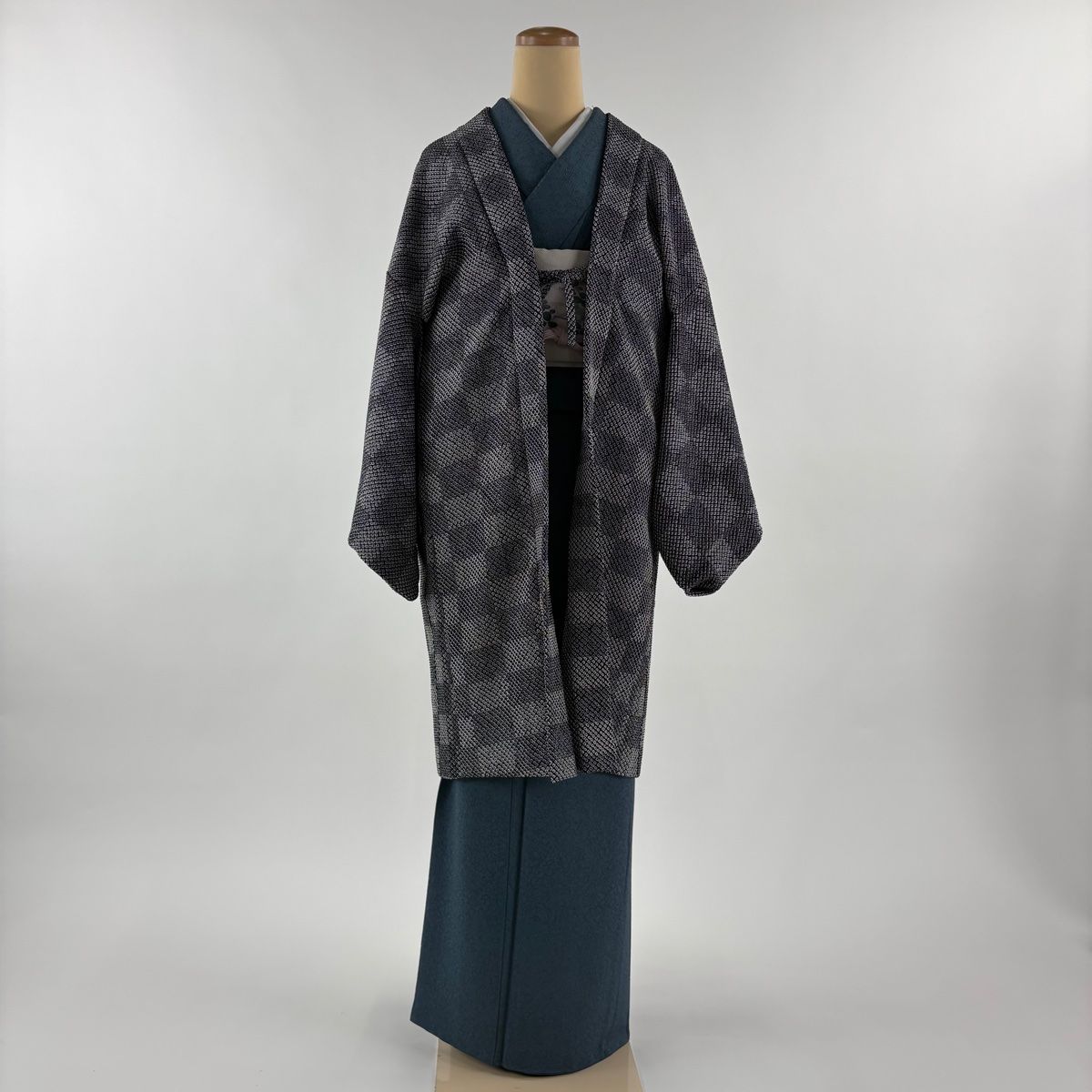 羽織 身丈97 cm 裄丈66 M 市松 総絞り 黒 正絹