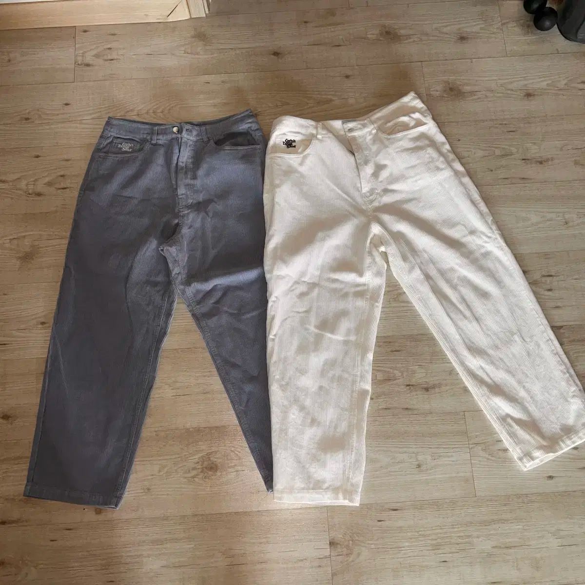 カビシ デザイン セラー ロゴ コーデュロイ パンツ ライト ブルー / アイボリー カラーです (一番後ろに実物画像あり)
